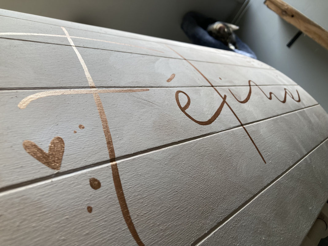 De benaming groeikoffer is ontstaan omdat het gaat om koffers die meegroeien vanaf de geboorte van het kind. De koffers worden volledig met de hand beschilderd aan de hand van het geboortekaartje. Ik werk met elementen uit het geboortekaartje om zo een fijne koffer samen te stellen waar men nog heel lang plezier aan heeft.