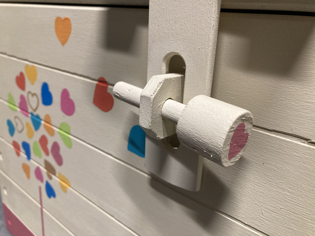 De koffers zijn voorzien van een veiligheidsknop. Deze kan aan de zijkant van de koffer worden gezet zodat als het deksel toe zou vallen men er niet met de handen tussen kan zitten.